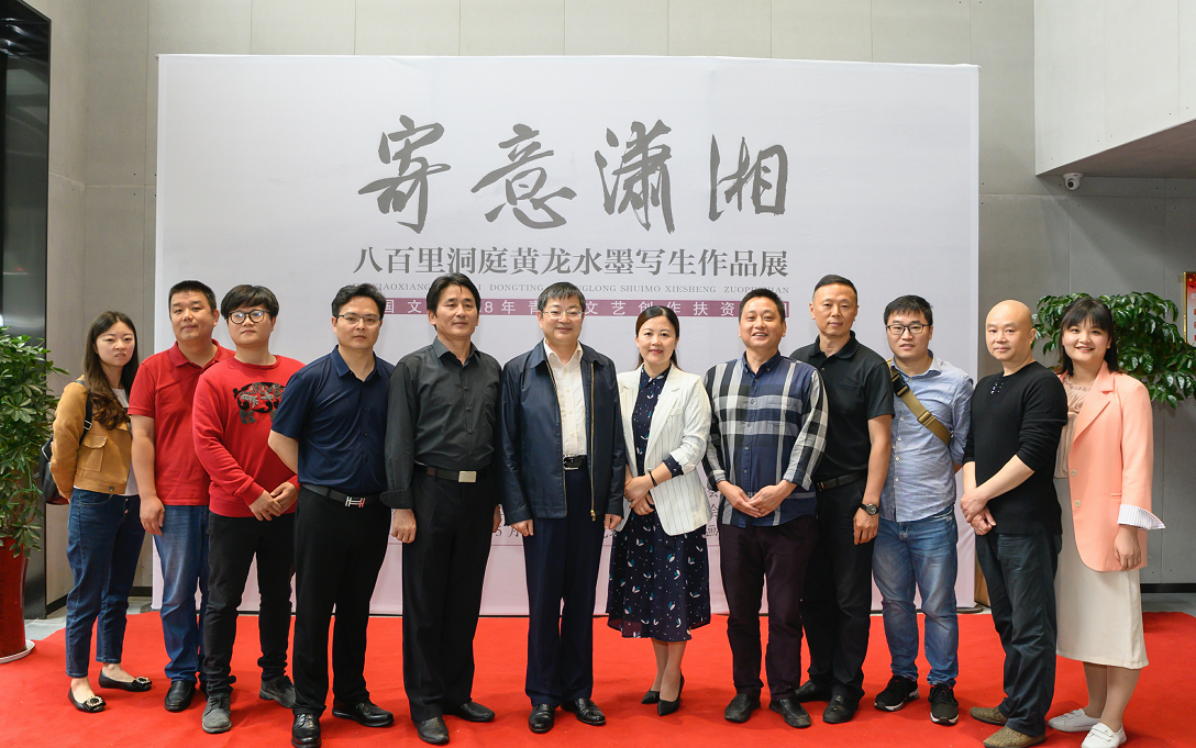 2018年,九三学社社员、青年画家黄龙以美术创作者的视角对洞庭湖的场景进行筛选,倾力打造了“寄意潇湘——八百里洞庭水墨写生作品”,获得中国文联2018年青年文艺创作扶持计划,从策划到实地写生前后历时一年有余,此次展览就是这一项目成果的集中汇报。