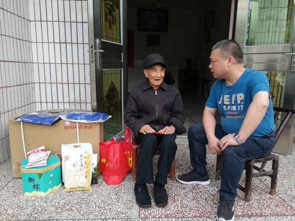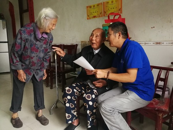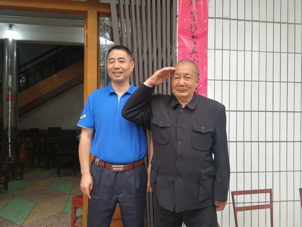 老兵郭光青对民革党员和志愿者的到来表示感谢