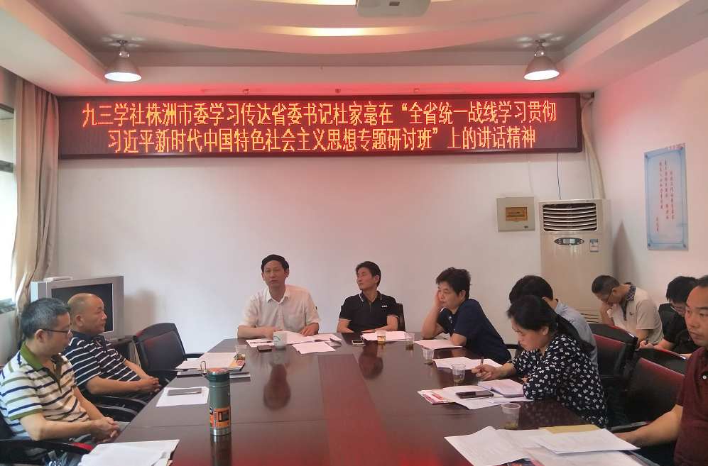 6月12日,九三学社株洲市委召开专题学习会议,认真传达省委书记杜家毫在全省统一战线学习贯彻习近平新时代中国特色社会主义思想专题研讨班上的重要讲话精神。九三学社湖南省委副主委、株洲市政协副主席、九三学社株洲市委主委、湖南工业大学副校长金继承主持学习会并讲话,社市委副主委肖运平、周红兵参加学习。