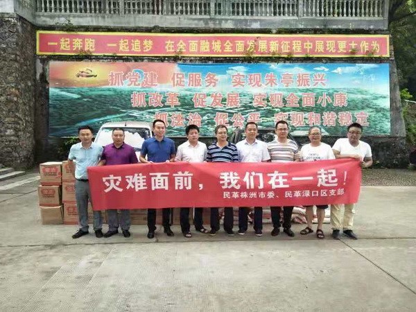 民革株洲市委和民革株洲渌口区支部在得知朱亭镇的灾情后,筹集了爱心物资大米50袋,食用油100桶,于2019年7月19日,前往灾区慰问受灾群众。