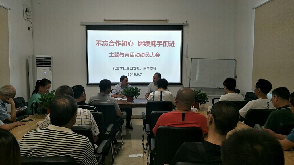 南华支社主委张银平、渌口支社主委张壮志共同传达学习了九三学社株洲市委“不忘合作初心,继续携手前进”主题教育活动动员部署会议精神及主题教育活动的主要内容,并分别对下一步开展主题教育活动进行具体安排部署。