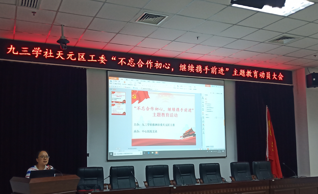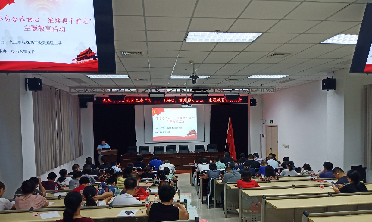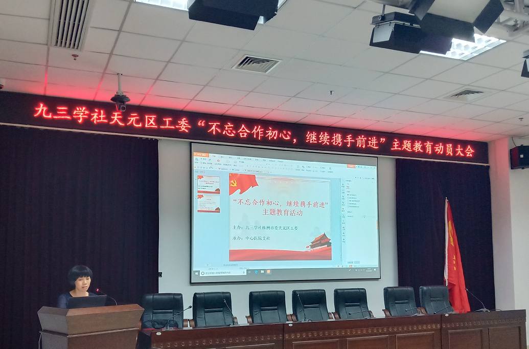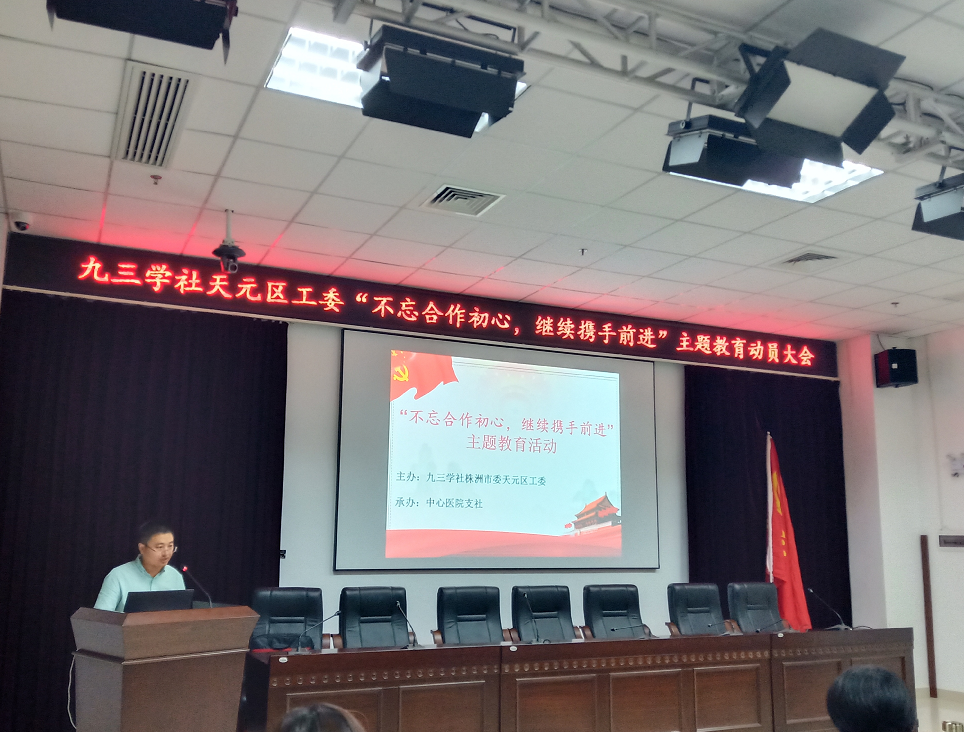 9月9日下午,九三学社株洲市委天元区工委在株洲市中心医院科培大楼多功能教室召开“不忘合作初心 继续携手前进”主题教育活动动员会。会议由天元区工委副主委周喜桃主持,天元区工委主委谈培蕾、社株洲市委秘书长丁倩等出席。全体工委委员、泰山支社、二中支社、中心医院支社、天元区支社共计66位社员参加了会议。