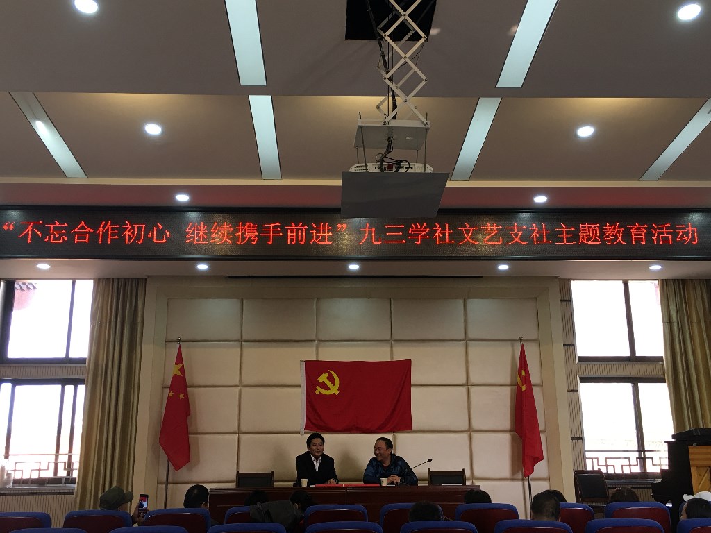 10月18日,九三学社株洲市委文艺支社在株洲市戏剧传承中心报告厅开展“不忘合作初心,继续携手前进”主题教育学习。学习会由支社主委何涛主持,九三学社株洲市委专职副主委肖运平、社芦淞区工委主委颜映雪应邀参加。