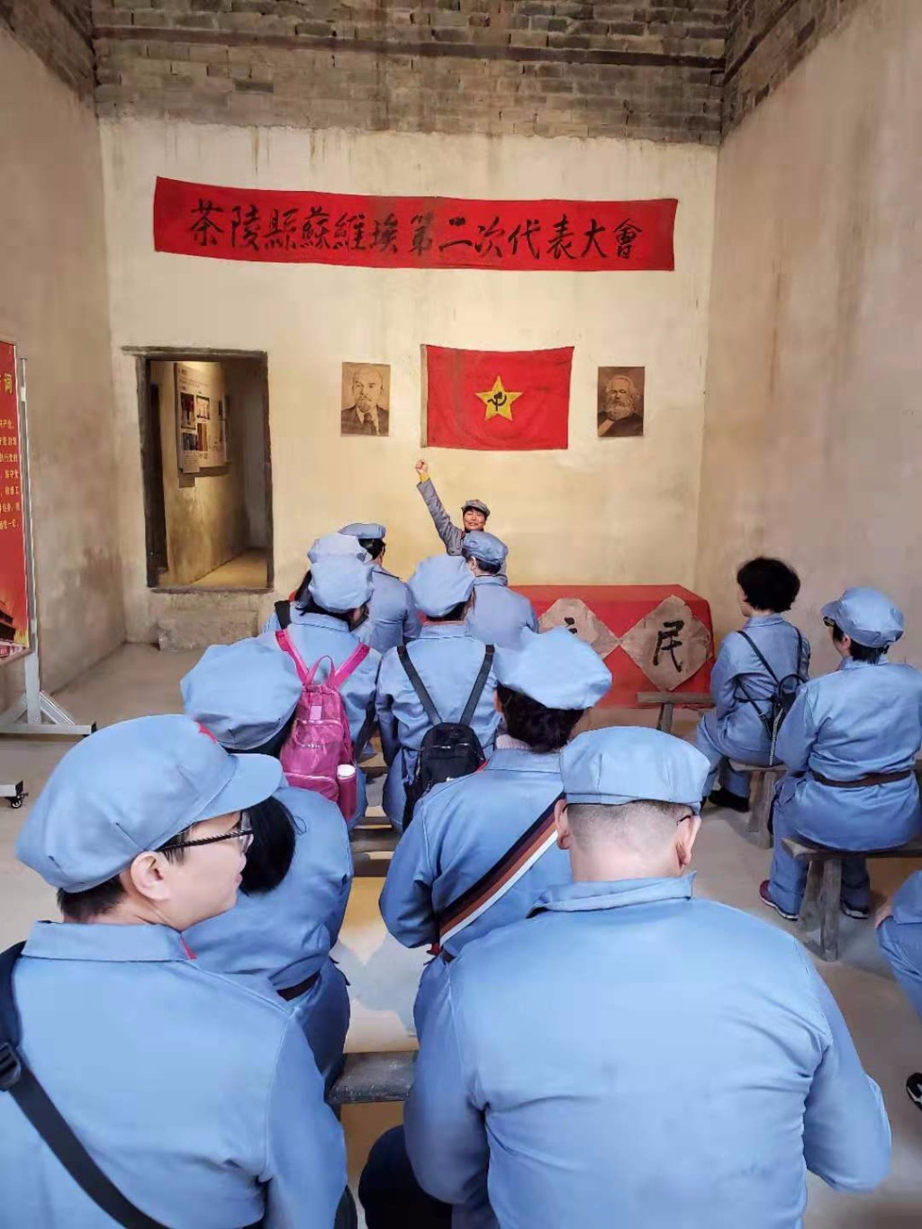 不忘初心重走红军路,感恩先烈牢记革命史。在茶陵严塘深入红军村,全体社员参观了中央苏区第一个苏维埃政府旧址、红军独立师旧址,红军政治保卫局旧址。1934年1月,茶陵县苏维埃政府搬迁至严塘湾里村,并随即召开了第二次苏维埃代表大会。百年老宅,比较完整地保留了苏维埃时期的门牌、地图、宣传画、标语等革命遗迹,红军将领及革命战士的英武形象跃然眼前,参观的众人深刻感受到了那前仆后继、浴血奋战、艰苦奋斗的革命气息。