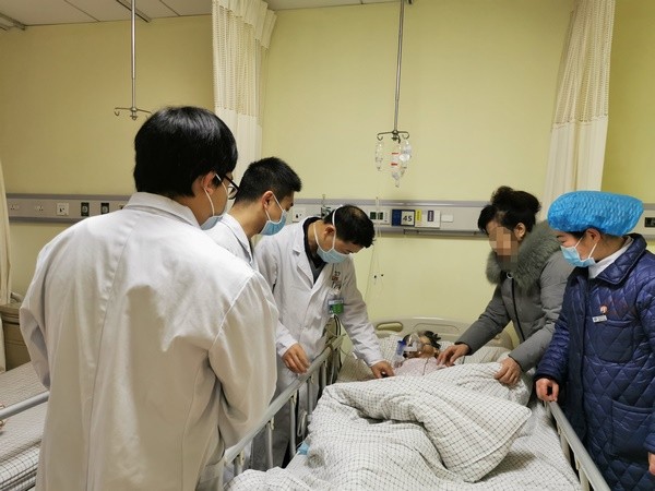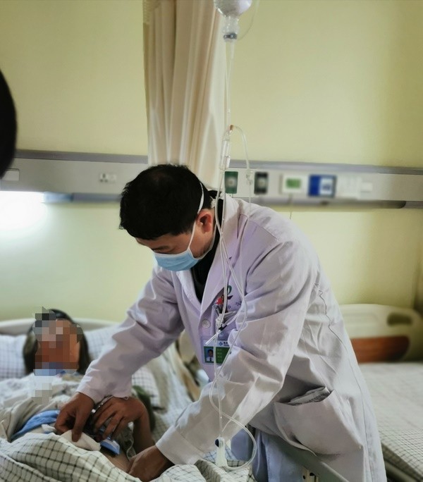 支部主委刘细平博士刚下手术台,就来病房查看危重患者病情。