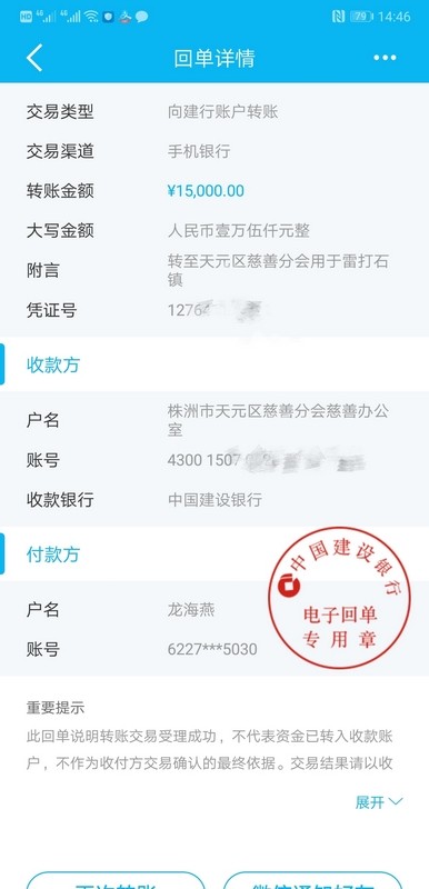 在民革株洲市委的统筹下,部分款项捐赠给农村防疫战线。2020年2月5日,与天元区委统战部颜赛副部长、天元区民政局党组书记李立新一同,民革天元区工委向天元区慈善分会捐赠15000元,定向用于雷打石镇疫情防控。雷打石镇吕军辉镇长代表镇政府接受捐赠。吕镇长表示,民革对口联系的同心美丽乡村伞铺村在本次防疫工作中任务重,防疫物资紧缺,这笔捐款将优先用于伞铺村防疫物资采购,确保人民生命安全。