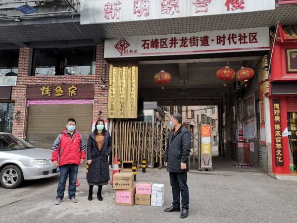 2020年2月28日下午,民革市委兼职副主委、石峰区政协副主席娄健,民革石峰工委主委、石峰区司法局局长李文波一行来到了中车天力锻业有限公司、中天建设火炬工业炉基地项目、时代社区,给企业复产,工地复工人员和防疫一线的社区工作人员送来了口罩2000只,消毒液160斤,洗手液6箱,84消毒液60瓶。