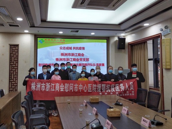 2020年3月11日下午,民革党员、株洲市浙江商会副会长黄其滔,陪同株洲市浙江商会会长蔡志林、党支部书记卢伟彬、轮值会长瞿美兰、徐新永,及秘书处工作人员,前往株洲市中心医院慰问驰援湖北黄冈的15名医护人员。