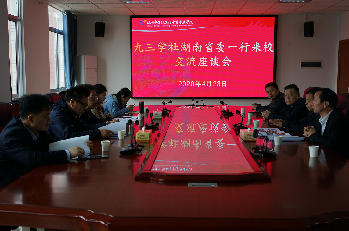 4月23日下午,九三学社湖南省委机关副巡视员刘福全一行到株洲市生物工程中等专业学校调研助学就业工作。中共攸县县委常委、县委统战部部长陈运发,九三学社湖南省委办公室主任肖泽辉、社会服务处处长熊英、社株洲市委专职副主委黄向阳、秘书长丁倩、宣传科长吴集兴等人参加调研。