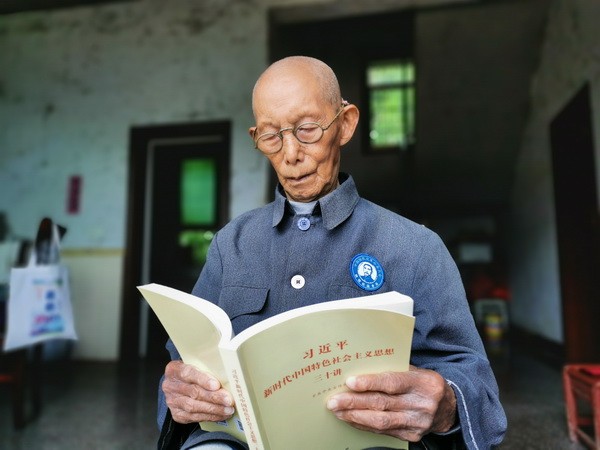 家住板杉镇竹花山村的龙永棠是今年新发现的抗战老兵,得知志愿者们要来看望自己,老人兴奋不已早早地做好了准备,98岁高龄的他跟志愿者们讲述起那段峥嵘岁月,1940年冬天,18岁的他被地方抽丁,一路步行辗转长沙、岳阳、湖北巴东、河南邓县等地,最终编入国民党陆军三十九军五十一师,在部队经过三个月刻苦训练后被分配到湖北省光化县老河被服厂任仓库管理员,后任事务室士兵,负责收发粮油,发放军饷,1942年调至第三团第三营任文书,1945年退伍回乡,后一直在家务农,生活虽然艰苦,但他一直保留着阅读的好习惯,家中摆放着不少报刊书籍,虽近百岁高龄仍坚持每天读书学习,这让志愿者们敬佩不已。