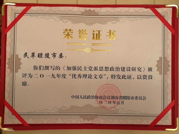 一批先进典型获得表彰,由民革醴陵市委撰写的《加强民主党派思想政治建设研究》、邓立平撰写的《聚集高质量履职,做好“融”字文章》获评优秀理论文章。民革农工党组获评优秀委员活动小组。付海燕、张智勇等委员的《关于农村教育师资问题的建议》和文荣华的《关于城市学校门口上下学交通拥挤问题的建议》等2篇提案获评优秀提案。邓立平、文荣华、唐英和李锋等4名党员获评年度优秀政协委员。邓立平和刘欣欣获评政协云工作先进个人、信息宣传工作先进个人。邓立平、付娴琼、易安获评微建议(社情民意)工作先进个人。
