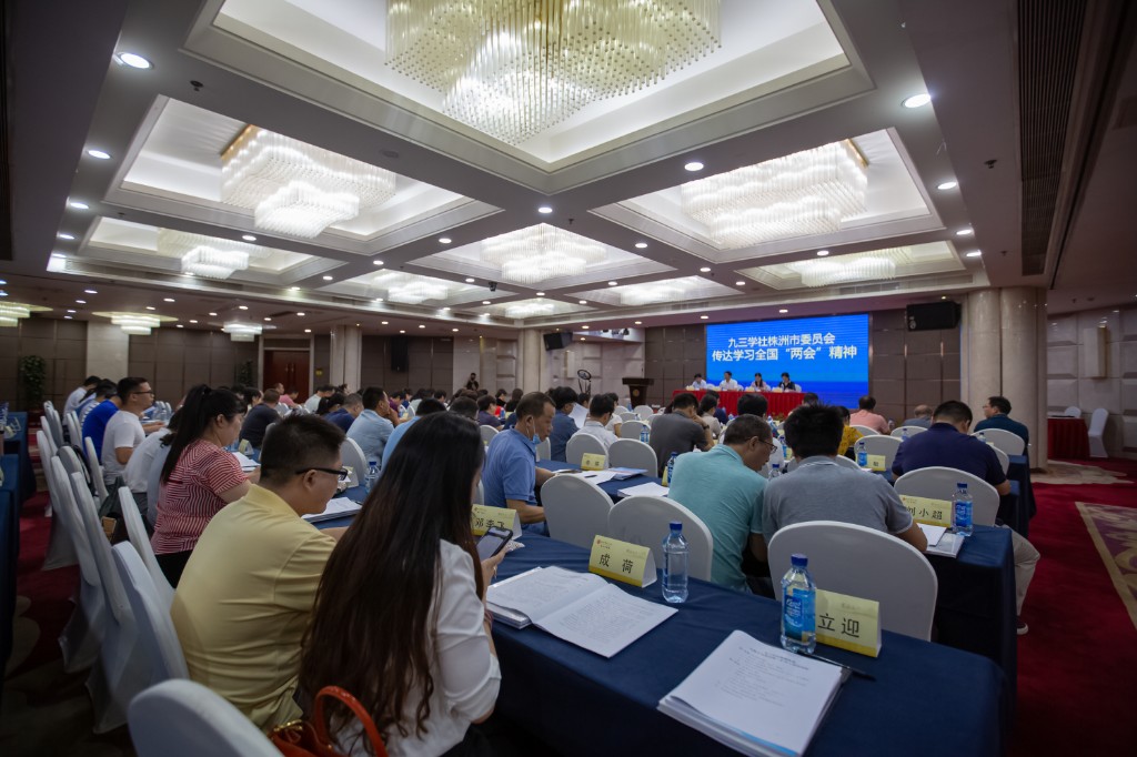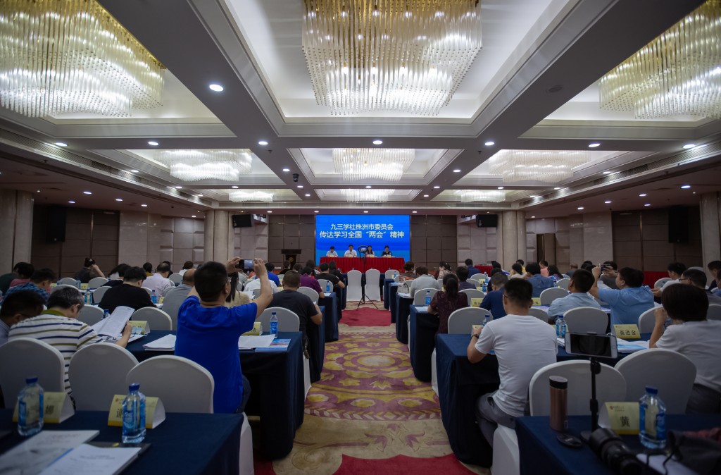 6月20日,九三学社株洲市委召开会议,传达学习全国“两会”精神和社省委八届四次全体(扩大)会议精神。社省委副主委、市政协副主席、社市委主委金继承主持学习会。