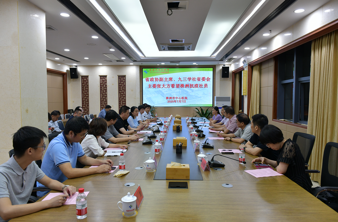 省政协委员、湖南工商大学科研处处长、教授欧阳资生,省政协委员、湖南大学经济与贸易学院教授钱晓英,长沙景程规划有限公司董事长、高级规划师刘源,九三学社湖南省委会参政议政处处长吴国寰,社市委副主委黄向阳、周红兵,社天元区工委主委、天元区人大常委副主任谈培蕾等陪同看望,社中心医院支社班子成员和骨干社员参加座谈会。