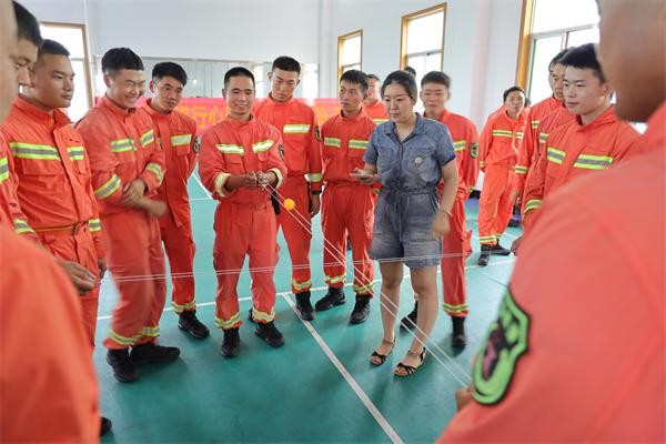 当咨询师团队赶到现场时,消防指战员们刚从抗洪抢险的一线回来,每个指战员都有些疲惫不堪,这与咨询师团队事前得到的消息不符,于是团队立马将鼓舞士气的团辅调整为放松减压团辅,减少力量性活动,改用身心放松的训练。在马教授舒缓的语言下,看到一个个消防指战员们放松坐姿,躺到地上,放松肌肉,舒展身体······整个团辅做完,指战员们一扫紧张和疲惫的状态,精神奕奕的与咨询师们告别后,又奔赴抗洪抢险第一线。