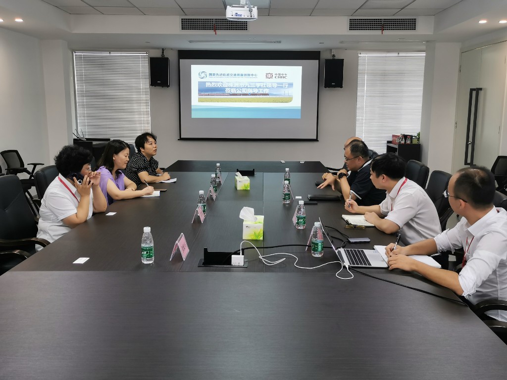 座谈会上,首先观看了宣传片《轮轨上的国家名片》,随后国创中心副总经理莫洪波向调研组一行介绍了中心概况。该中心于2018年2月成立,采取“公司+联盟”模式运行,组建了由轨道交通领域骨干企业以资本为纽带的独立企业法人,并与国内外 10 余个科研院所开展技术交流合作。2019年1月,被国家工信部批准为“国家级先进轨道交通装备创新中心”。