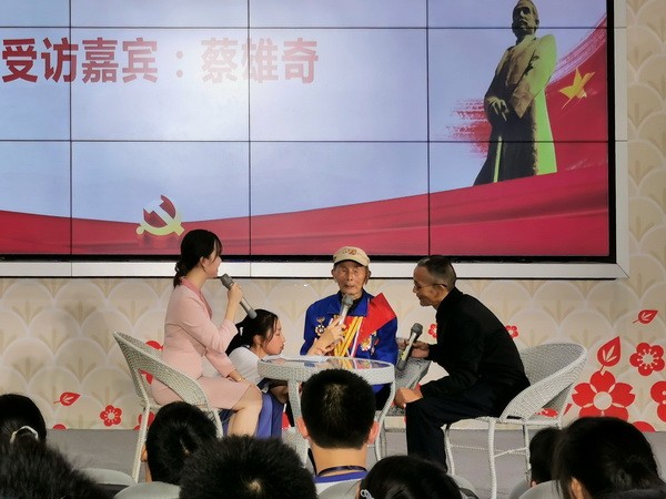 活动访谈环节中,原国民党第9战区29集团军67军162师上尉防毒组员、海军部陆战炮兵团机炮连连长蔡雄奇老人,原国民革命军72军新兵14师战士、曾参加抗日战争、解放军淮海战役、渡江战役、抗美援朝战争的唐炳桂老人先后上台接受访谈。