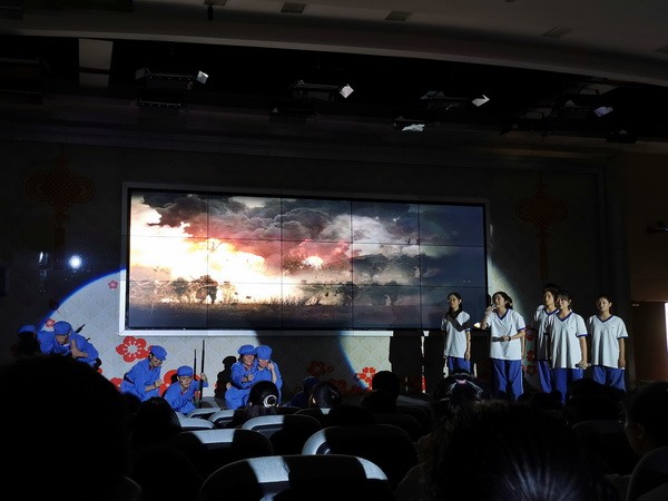 两位老人以自己亲历战争的真实感受,为莘莘学子上了一堂生动感人的爱国主义教育课。唐炳桂老人至今仍能唱响当年的军歌,他举起拐杖,演示战斗时与日军短兵相接,拼刺刀白刃战时的激烈情景。蔡雄奇老人今年已经百岁高龄,仍然精神健硕,他对同学们说:“习总书记曾经说过:‘一个有希望的民族不能没有英雄,一个有前途的国家不能没有先锋。’我已经老了,没法做英雄、做先锋,希望同学们努力学习,珍惜和平,长大后做英雄,做先锋,建设祖国,为了全国人民的幸福生活而奋斗!”礼堂中热烈的掌声久久不息,同学们大声呼喊着:“老兵爷爷!您就是我们的英雄!您就是永远的先锋!”