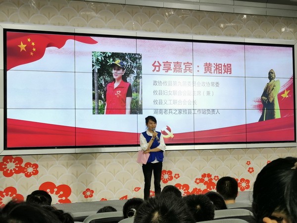 政协株洲市攸县第九届常委、攸县妇联副主席、攸县义工联合会会长、湖南老兵之家攸县工作站负责人黄湘娟作了“我的老兵情结”主题分享,黄湘娟从事爱心公益23年,她以源自心灵的人间大爱与正义,无私奉献,将自己融入了为抗战老兵服务的事业中,说到动情处潸然泪下,触动灵魂深处,感人至深。