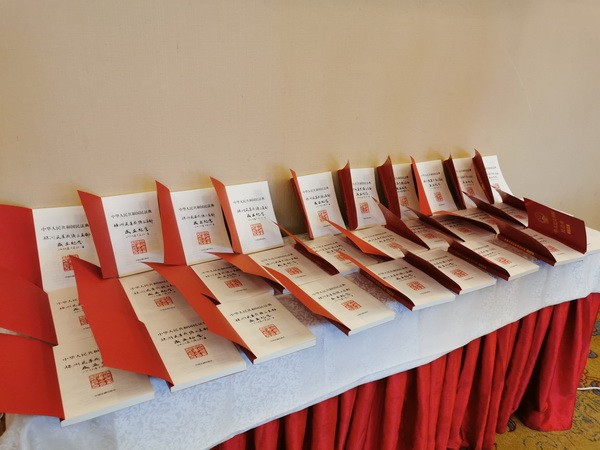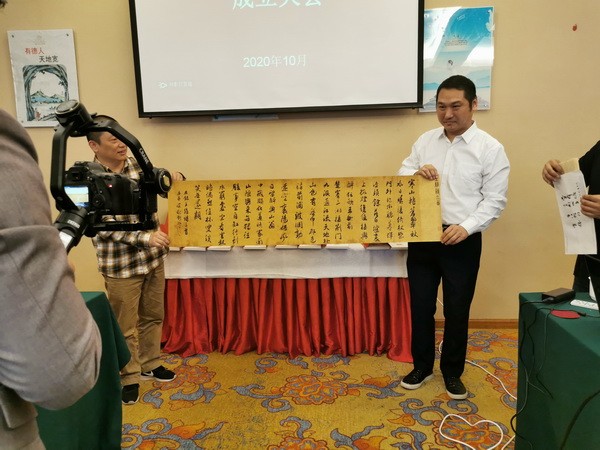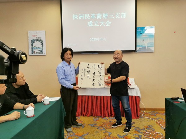 在大会现场,民革书画院的书画专家们赠送多件书画作品,祝贺民革荷塘三支部成立。