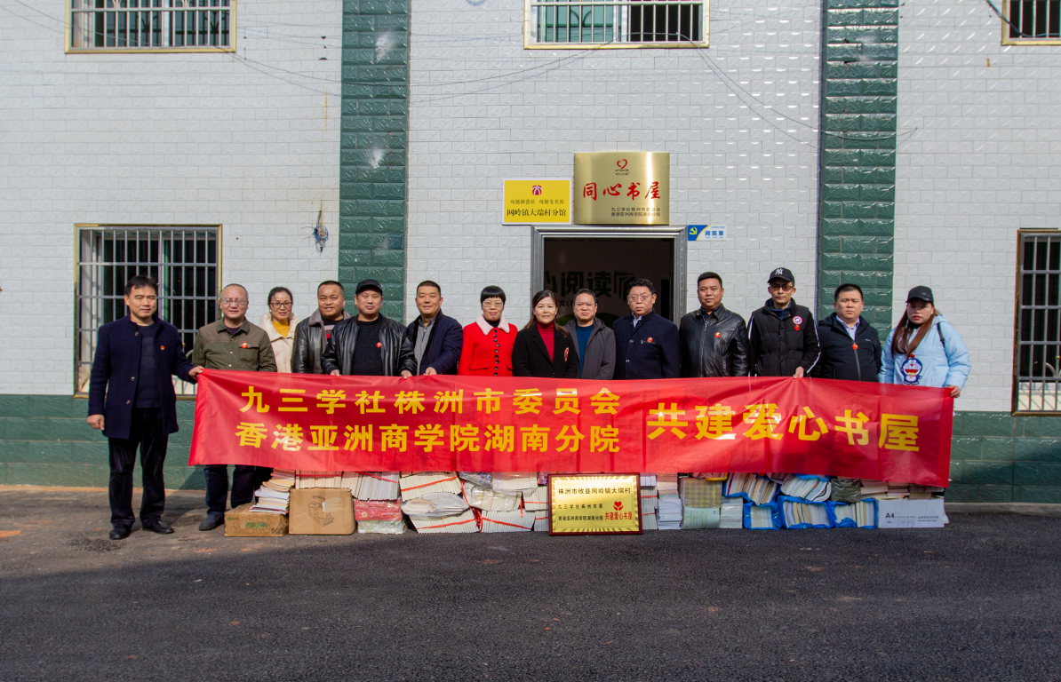 12月6日,大瑞村“同心书屋”揭牌、赠书仪式在攸县网岭镇大瑞村村委会举行。大瑞村“同心书屋”由九三学社株洲市委会与香港亚洲商学院湖南分院携手共建。