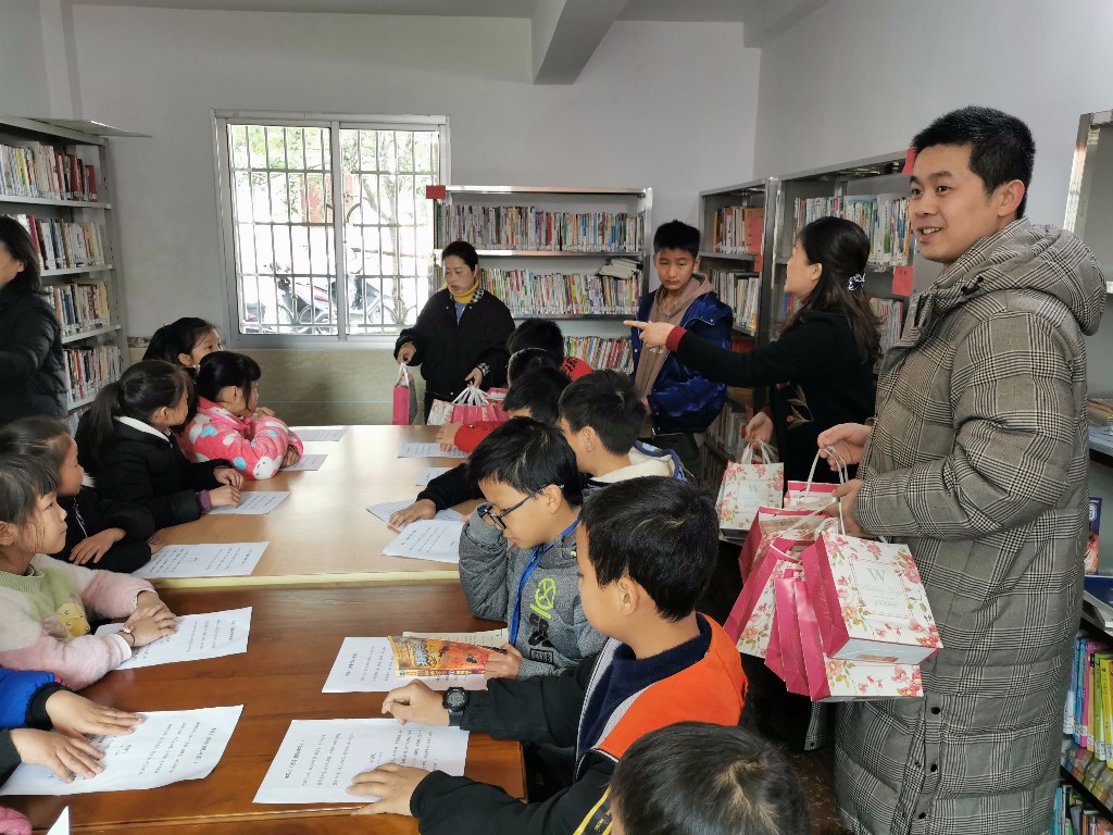 捐赠仪式后,株洲市妇联调研员谢逢娥给大瑞村中小学生30余人送上了一堂精彩的国学文化公益课,并带领孩子们诵读《诗经·木瓜》《陋室铭》等国学经典。社员高立迎还为孩子们送上牛奶、薯片等礼品。“同心书屋”书声琅琅、欢歌笑语,顿时成了欢乐的海洋。