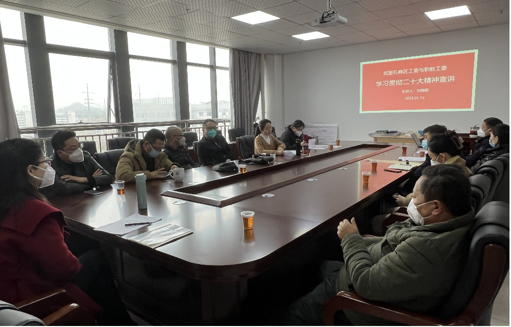 1月13日,民盟职教工委和石峰区工委在湖南汽车工程职业学院西校区举行了学习贯彻中共二十大精神宣讲会,市政协常委、盟市委会专职副主委刘娅娟作宣讲报告,盟市委会委员、民盟职教工委主委沈言锦主持宣讲会。