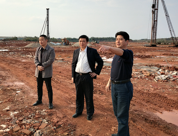 (图为吴爱清主席现场了解地博光学材料企业项目建设情况)