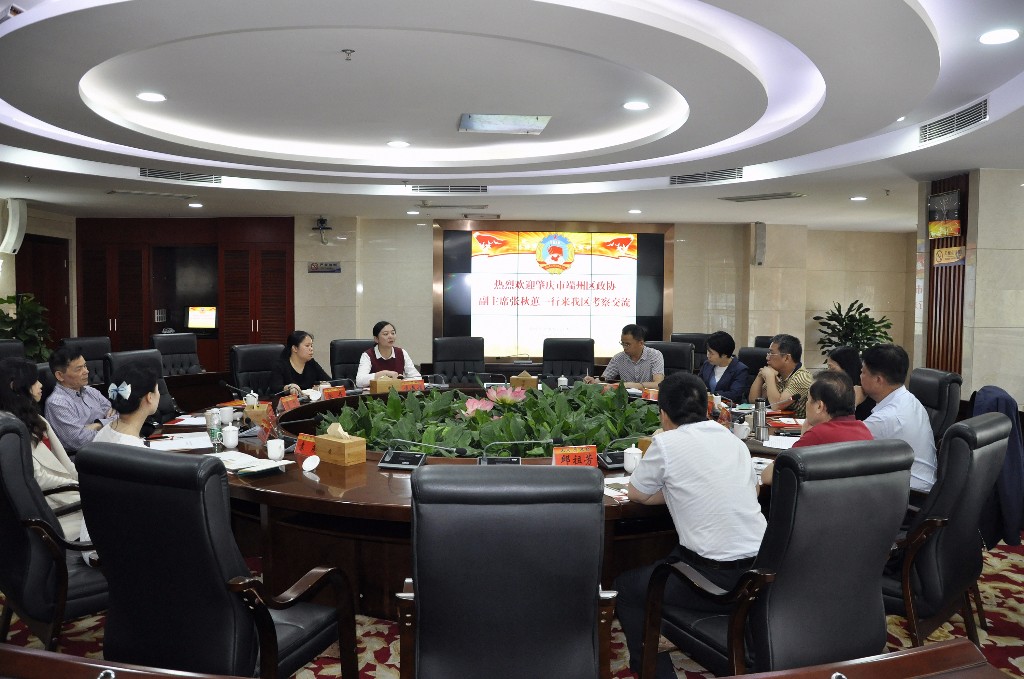 4月19日,广东省肇庆市端州区政协副主席张秋蕙、党组副书记黎雄炘一行7人,来我区考察学习城市管理的成功经验与做法,区政协副主席曾天青陪同调研。