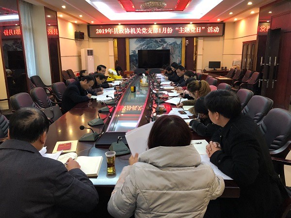 1月16日下午,县政协机关党支部组织全体党员、干部在一楼会议室开展“主题党日”活动。县政协党组书记、主席欧阳鹏志,县政协副主席黄建林、谭芳林以普通党员身份参加。
