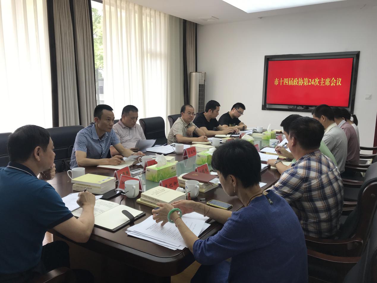 7月11日,市政协主席江曙明主持召开市政协第24次主席会议。市政协副主席李忆湘、钟富强、程曙光、肖建辉,秘书长黄志敏出席会议,市政协各专委会主任列席会议。