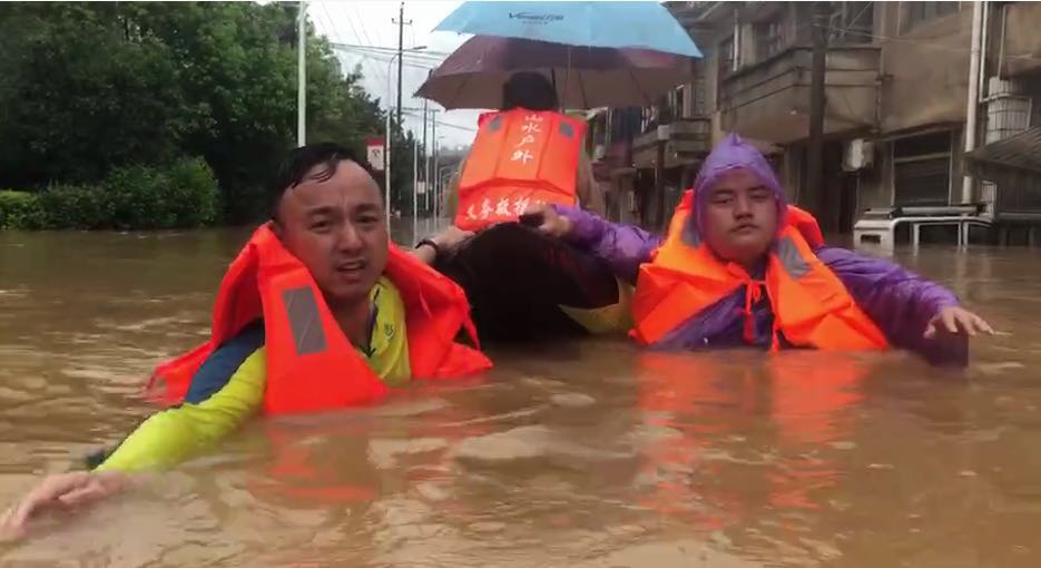 洪水无情人有情,大灾面前有大爱!这是政协文体组委员吴永生和公安干警营救老奶奶的画面。