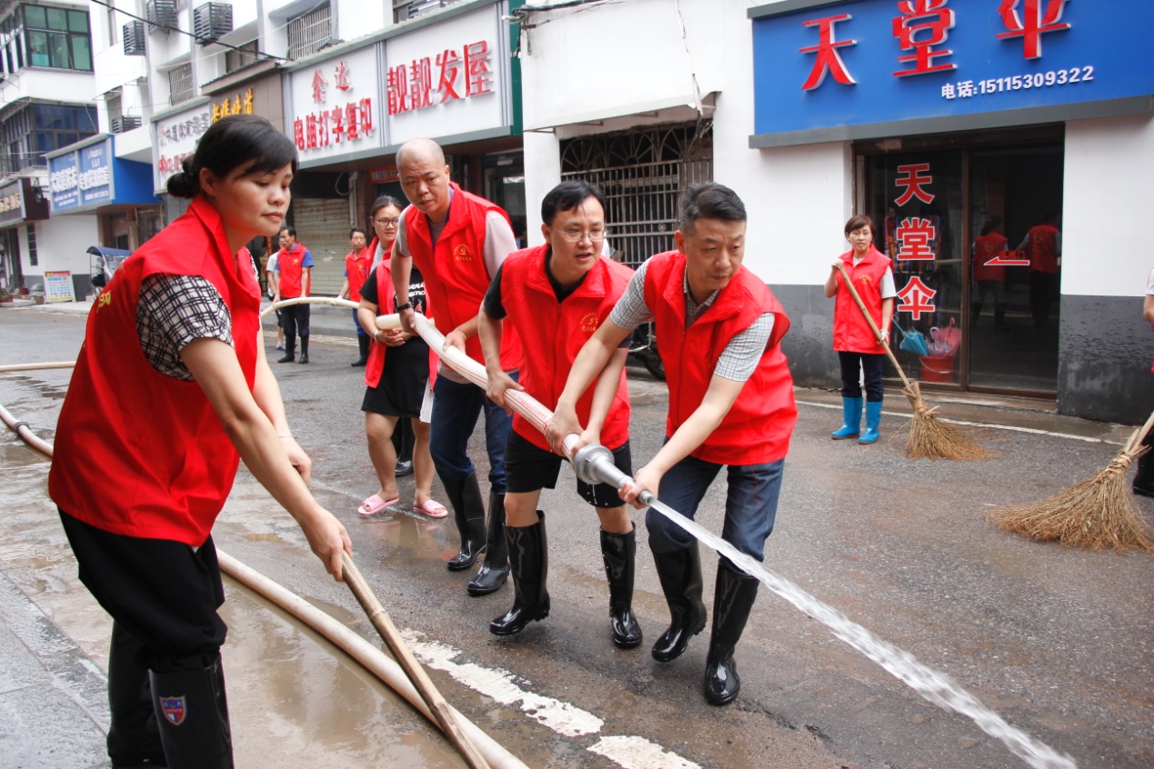 医卫组政协委员肖宏韬一行组成的慰问小分队为茶山镇汤家坪综合服务中心送去了30件矿泉水、20箱方便面等应急物资,并带领行政支部党员与北门社区工作人员一起对街道进行冲洗清扫,百姓纷纷为这队红马甲点赞!