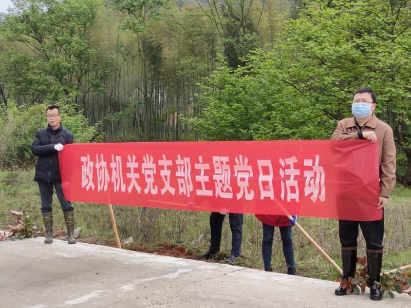 4月1日上午,炎陵县政协机关党支部组织全体机关党员干部前往沔渡镇上老村,开展了主题为“创建省森林城市 共筑绿色炎陵”支部主题党日活动,助力沔渡镇美丽乡村建设。县政协主席欧阳鹏志,副主席黄建林、谭芳林以普通党员身份参加。