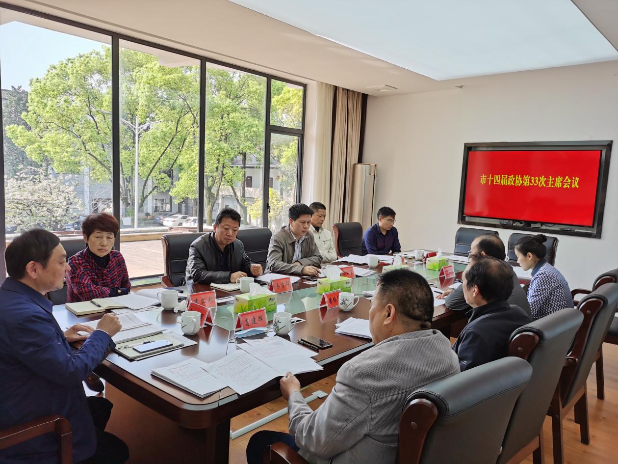 4月8日,市政协召开十四届三十三次主席会议,研究"双助双行动"工作和委派民主监督员工作。市政协主席江曙明主持会议。副主席李忆湘、肖建辉、易召群,副主席提名人选黄振伟,秘书长黄志敏出席。