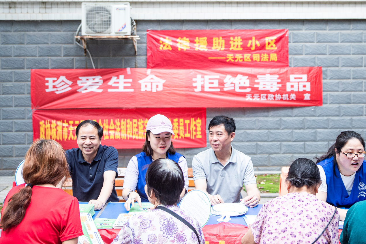 6月26日,在第36个“国际禁毒日”到来之际,天元区政协社法民宗委、文教卫体和文史委委员工作室联系入驻委员,走进安置小区东湖小区,开展送法进小区、禁毒宣传、垃圾分类、文明城市创建等活动。天元区政协党组书记、主席周玉智,副主席袁丽凡参加活动现。