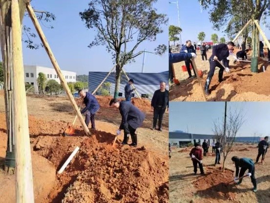 当天上午,醴陵市政协机关全体干部职工分赴东富工业园、石亭镇,共同投入到这场充满生机与活力的植树活动中。在东富工业园植树现场,醴陵市政协主席廖胜云,副主席刘高飞、丁武华、陈治平、雷向军一同挥锹培土、提水浇苗。