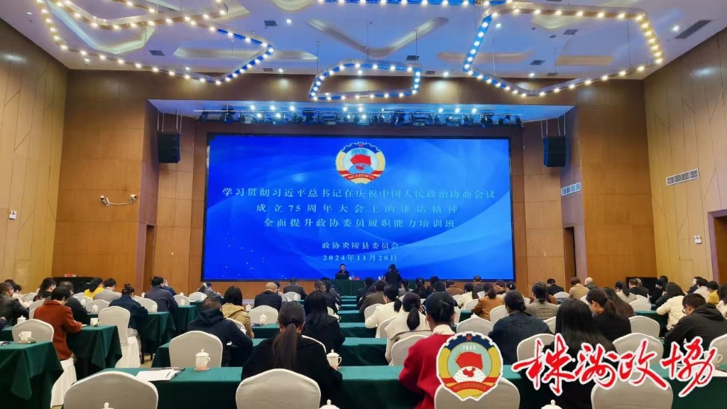 11月28日,炎陵县政协举行2024年度委员培训,培训主题为“学习贯彻习近平总书记在庆祝中国人民政治协商会议成立75周年大会上的重要讲话精神,全面提升政协委员履职能力”。邀请省、市政协专家开展专题授课。县全体政协委员、乡镇党委专职副书记、政协专干、政协机关干部参加培训。