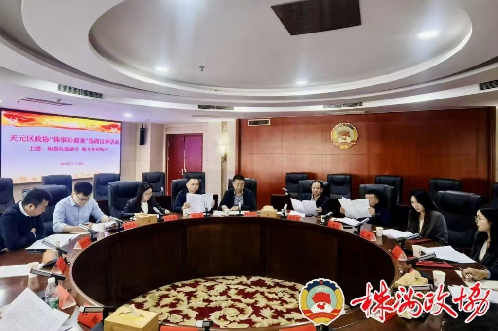 近日,天元区政协开展以“加强农旅融合 助力乡村振兴”为主题的“株事好商量”协商议事活动。区政协主席周玉智出席并讲话。区政府副区长亓艳波、区政协副主席胡志清等参加协商活动。