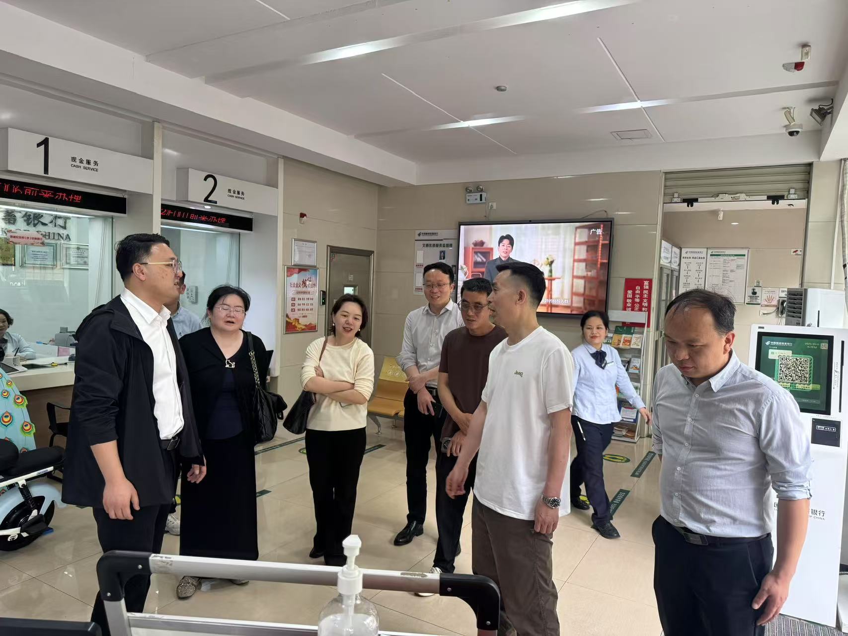 委员们实地考察邮储银行荷塘区支行营业大厅及小微企业金融服务专区,详细了解该行针对中小微企业推出的特色信贷产品、数字化服务流程及普惠金融政策落实情况。全体人员共同观看邮储银行宣传片,深入理解其服务实体经济、支持地方产业升级的战略布局与社会责任实践。