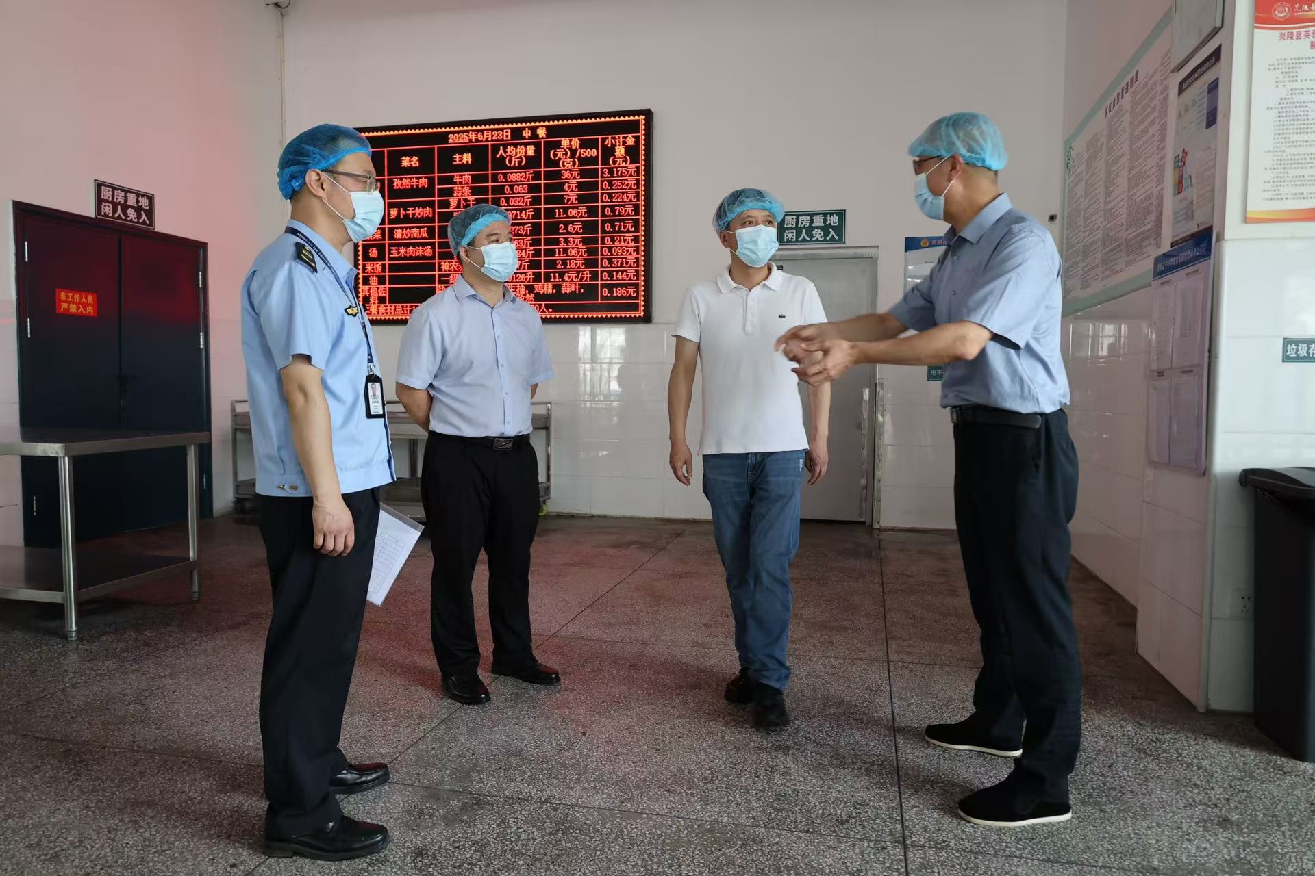 6月24日,炎陵县政协主席刘晓斌到县城芙蓉学校,督导校园食品安全和膳食经费管理突出问题专项整治工作开展情况。市教育局、市场监督管理局负责人等参加。